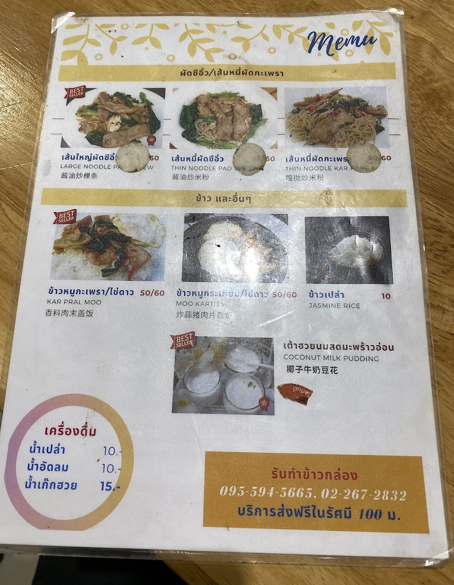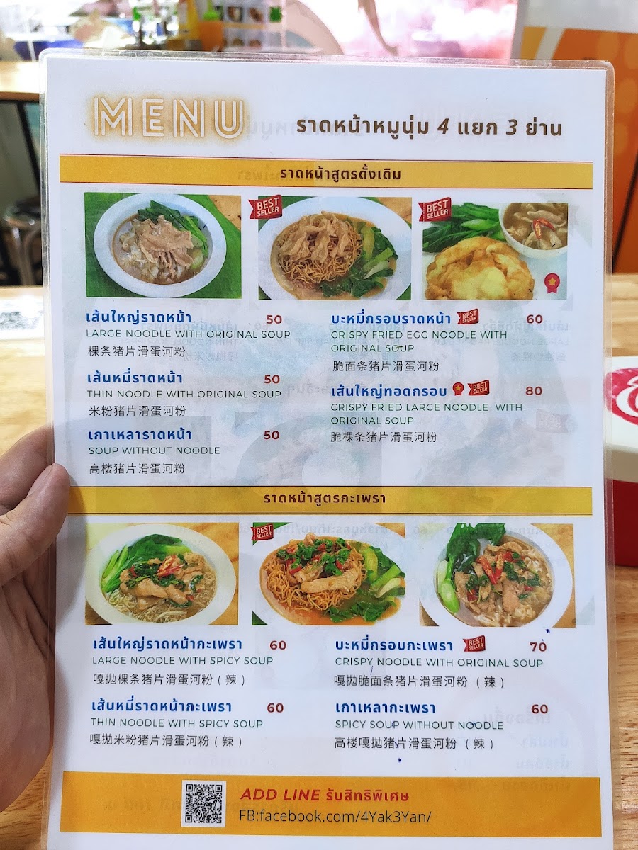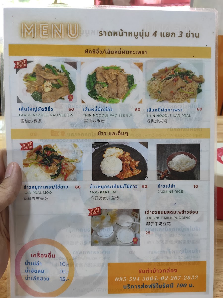 The menu offers a variety of dishes beyond the signature rad na, including flavorful options like Kar Prai Moo with a sunny-side-up egg served with rice – a personal favorite for its balance of spices and textures. Prices are reasonable, making it an ideal spot for quick, fulfilling street-style dining with a touch of comfort. Friendly service and a no-queue environment add to the overall pleasant experience, making Rat Na Sam Yan a must-visit for anyone craving genuine Thai-Chinese cuisine.